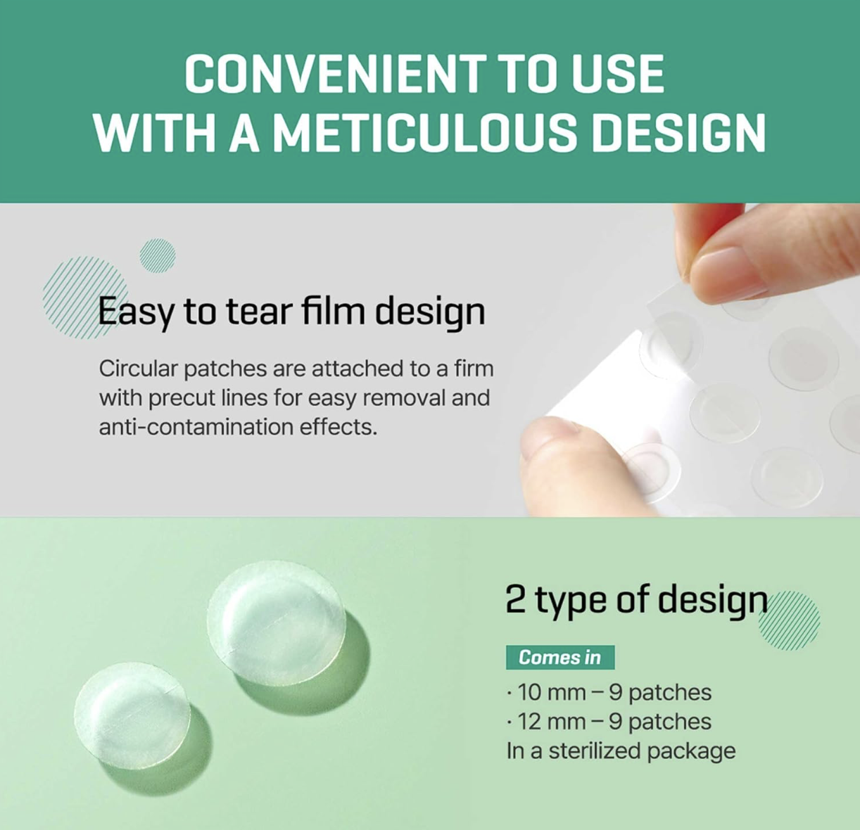 Su diseño ultrafino se adapta perfectamente a la piel, haciéndolos casi invisibles, lo que permite su uso durante el día o la noche. Actúan como una barrera protectora contra la contaminación y el contacto manual, evitando que el brote se agrave o se infecte más.