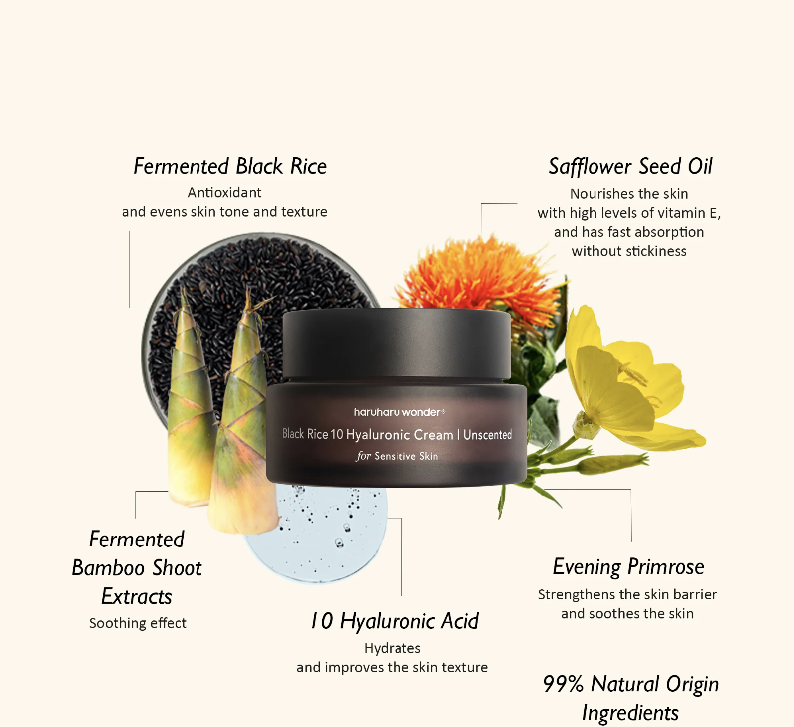 Crema con ácido hialurónico y arroz negro sin fragancia (Black Rice 10 Hyaluronic Cream unscented)