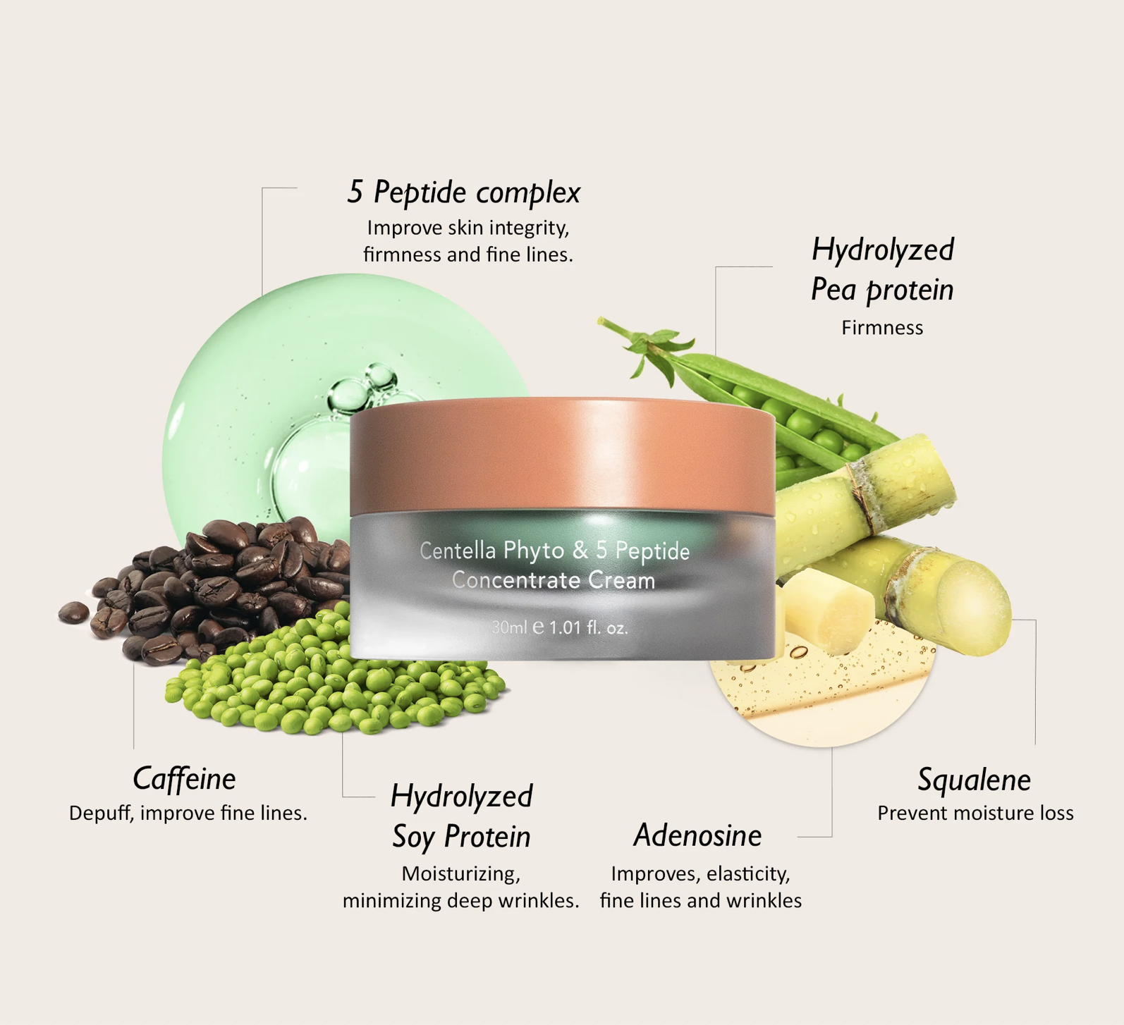 Crema con concentrado de péptidos y centella (Centella Phyto & 5 Peptide Concentrate Cream)