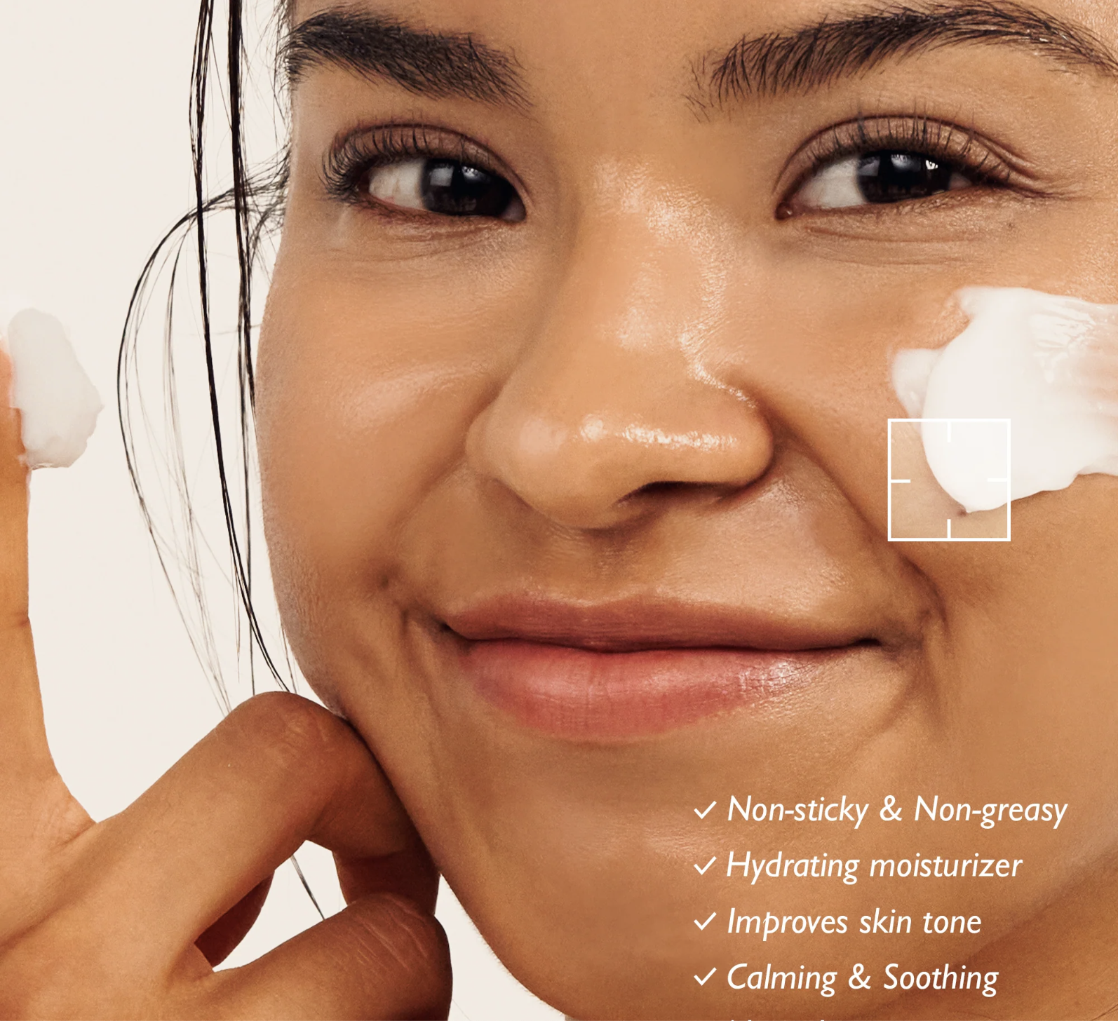 - Ácido hialurónico altamente hidratante, ginseng rojo rejuvenecedor y aceite de onagra y lavanda calmante.