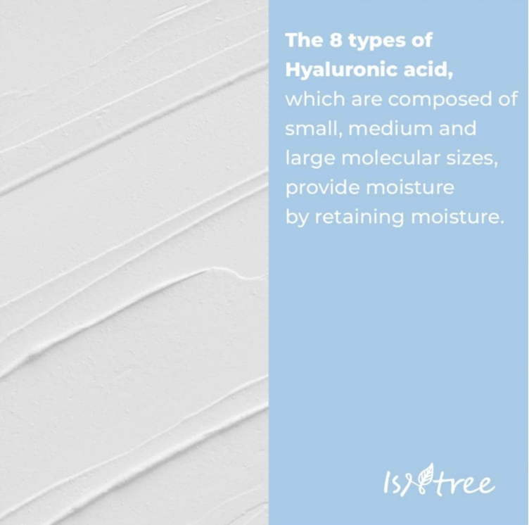 - Ácido hialurónico. Contiene 8 tipos de ácidos hialurónico que forman una capa triple de moléculas pequeñas y polímeros para fortalecer la barrera cutánea.