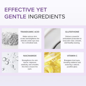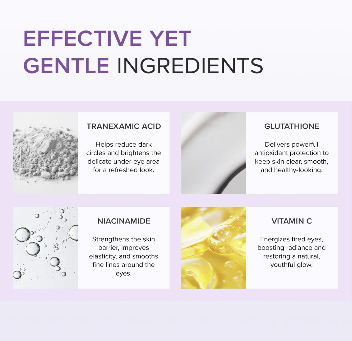 Set especial de contorno de ojos formulado con glutatión y activos antiedad que ayuda a iluminar, unificar el tono y mejorar la apariencia de líneas finas en la zona periocular.