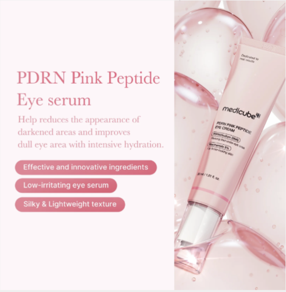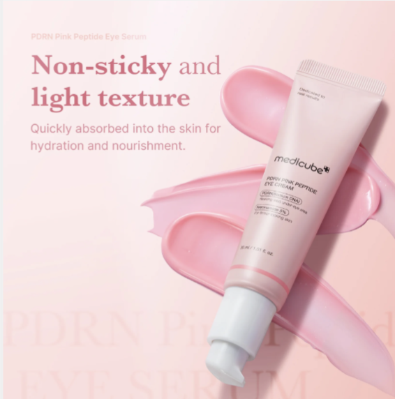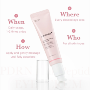 PDRN Pink Peptide Eye Cream de MEDICUBE está formulado para apoyar los procesos de regeneración cutánea en una de las zonas más delicadas del rostro. Su ingrediente estrella, el PDRN (Polydeoxyribonucleotide), es conocido por su capacidad para favorecer la reparación celular y mejorar la calidad de la piel, ayudando a restaurar una apariencia más firme y saludable.