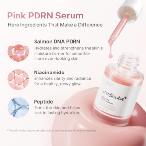 PDRN Pink Peptide Serum de Medicube está formulado para apoyar los procesos de regeneración y reparación cutánea, ayudando a mejorar la calidad global de la piel. Su ingrediente estrella, el PDRN (Polydeoxyribonucleotide), es conocido por su capacidad para favorecer la renovación celular y fortalecer la estructura cutánea, contribuyendo a una piel más firme y saludable.