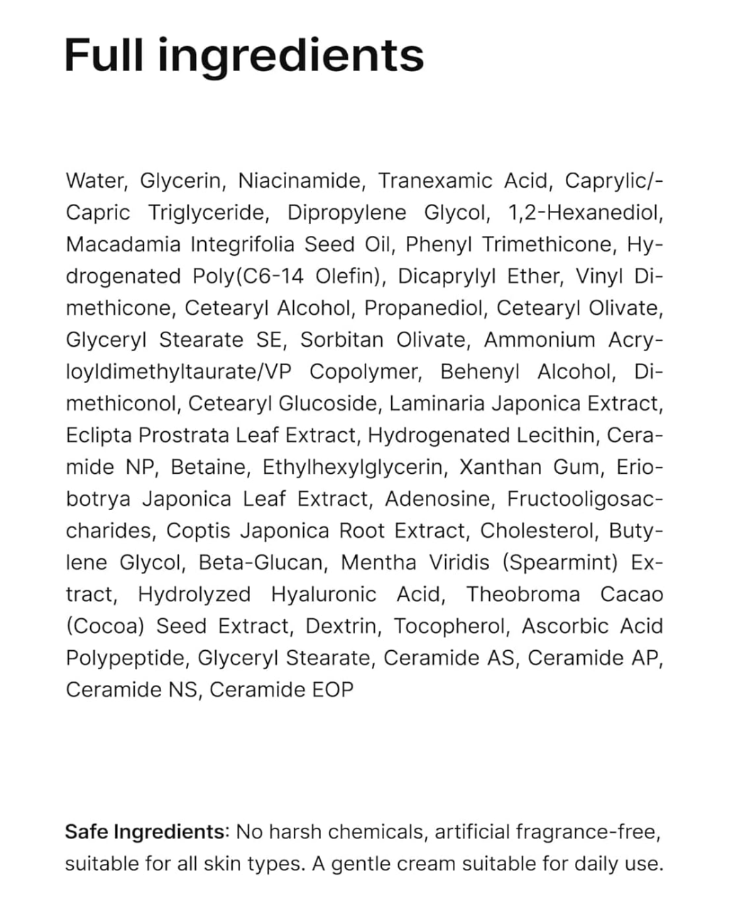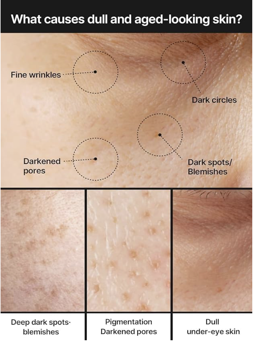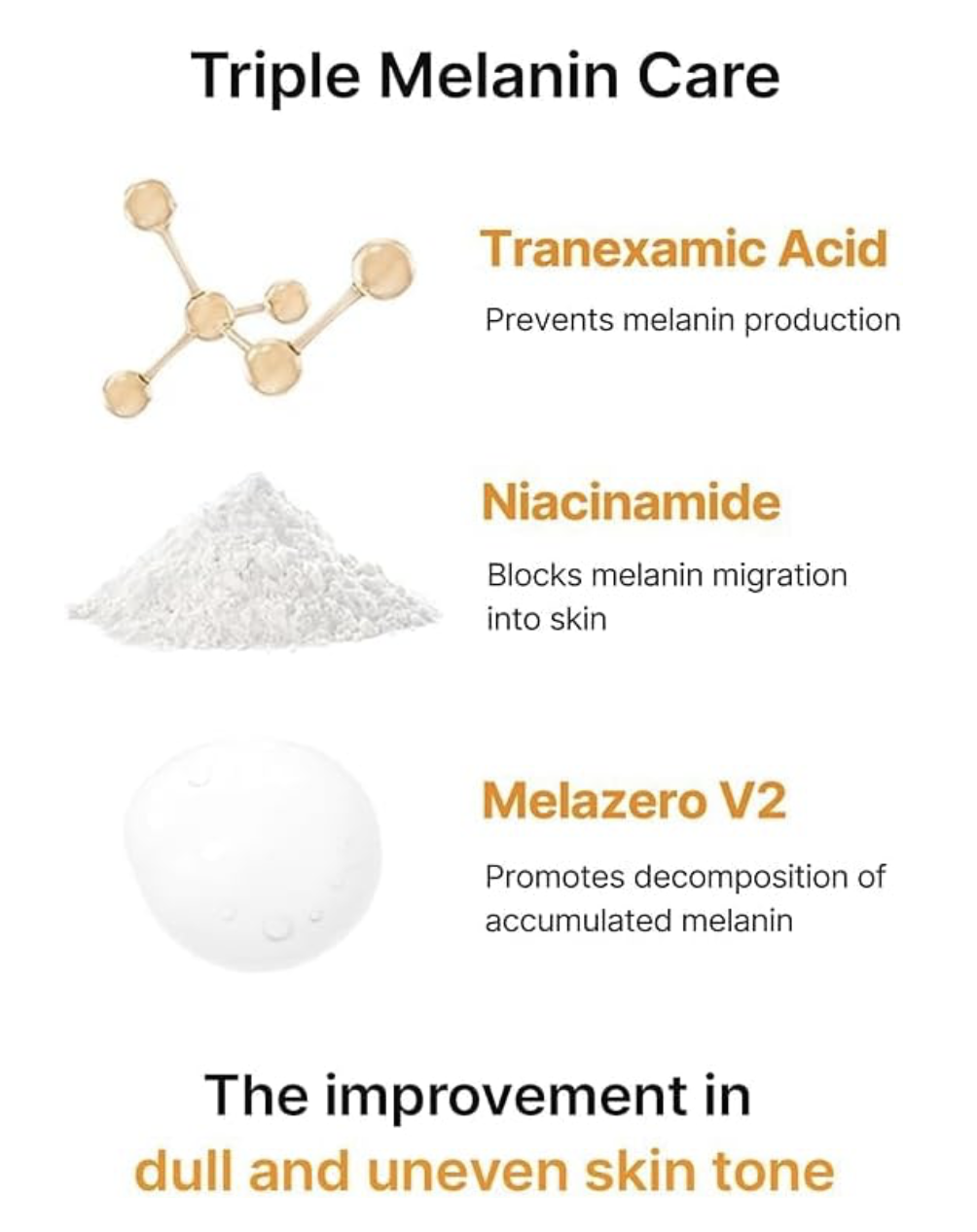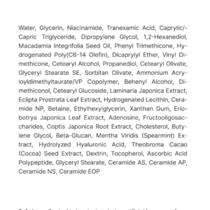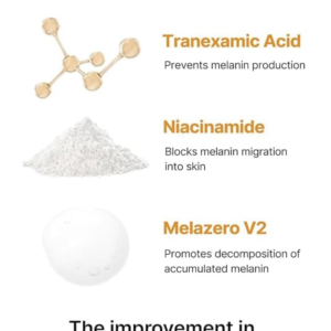• Ácido tranexámico: contribuye a la reducción de hiperpigmentación y tono desigual.