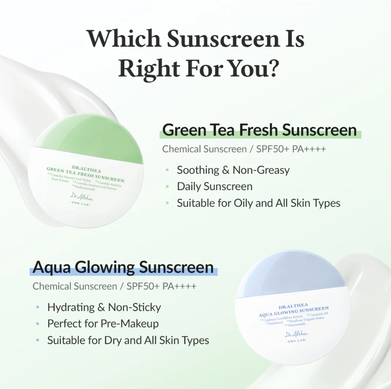 El Dr. Althea Green Tea Fresh Sunscreen es un protector solar químico de textura ligera tipo gel‑crema, que ofrece SPF 50+ PA++++ con una sensación fresca, sin dejar residuo blanco ni sensación pegajosa. Fórmula que equilibra una máxima protección solar con ingredientes que calman, hidratan y regulan el sebo. Es una excelente opción para pieles sensibles, mixtas, grasas o acneicas, además de ser vegano y testado por dermatólogos.