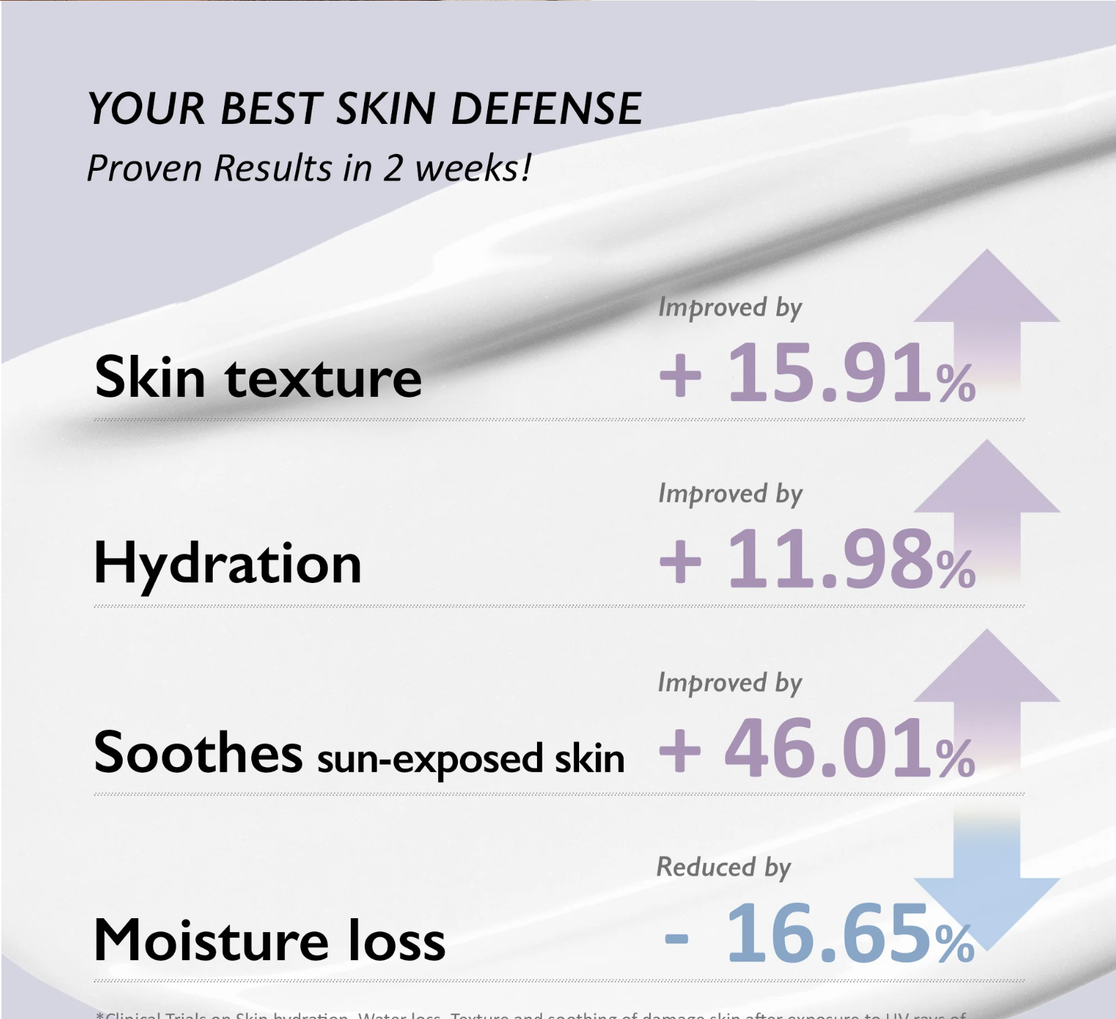 - Enriquecido con extracto de hemifolio para nutrir y calmar, además de niacinamida para mejorar el tono de la piel.