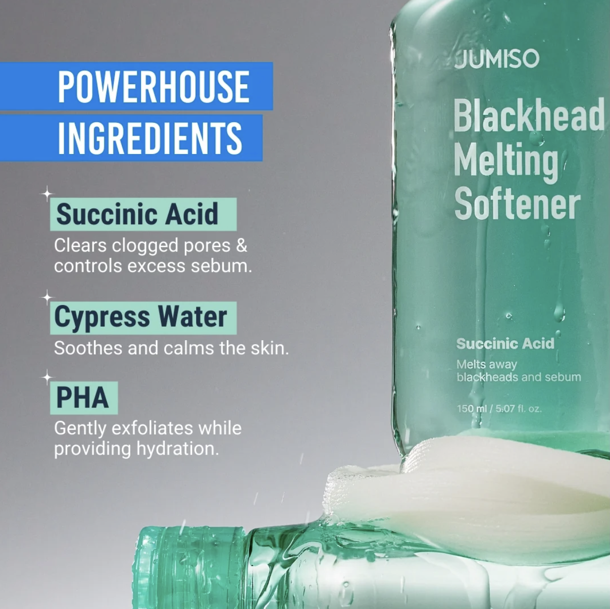 El Jumiso Blackhead Melting Softener es una solución efectiva y suave para tratar puntos negros y sebo acumulado. Su fórmula con Ácido Succínico, PHA y extractos calmantes limpia en profundidad sin irritar, a la vez que mantiene la piel hidratada. Ideal para incorporar en una rutina semanal de cuidado facial.