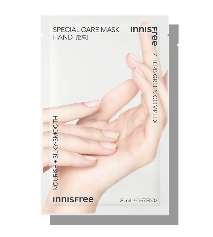 La Special Care Mask Hand de Innisfree es una mascarilla para manos tipo guante impregnada con una esencia rica en humectantes, emolientes y extractos botánicos.