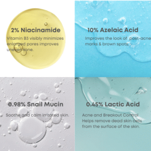 El Nineless Suero de Ácido Azelaico A-Control al 10% es un tratamiento multifuncional ideal para pieles con acné, rosácea, manchas o textura irregular. Su combinación de ácidos, péptidos y extractos calmantes ofrece resultados notables sin irritación. Excelente para quienes buscan una mejora visible en tono y textura con una fórmula suave y respetuosa.