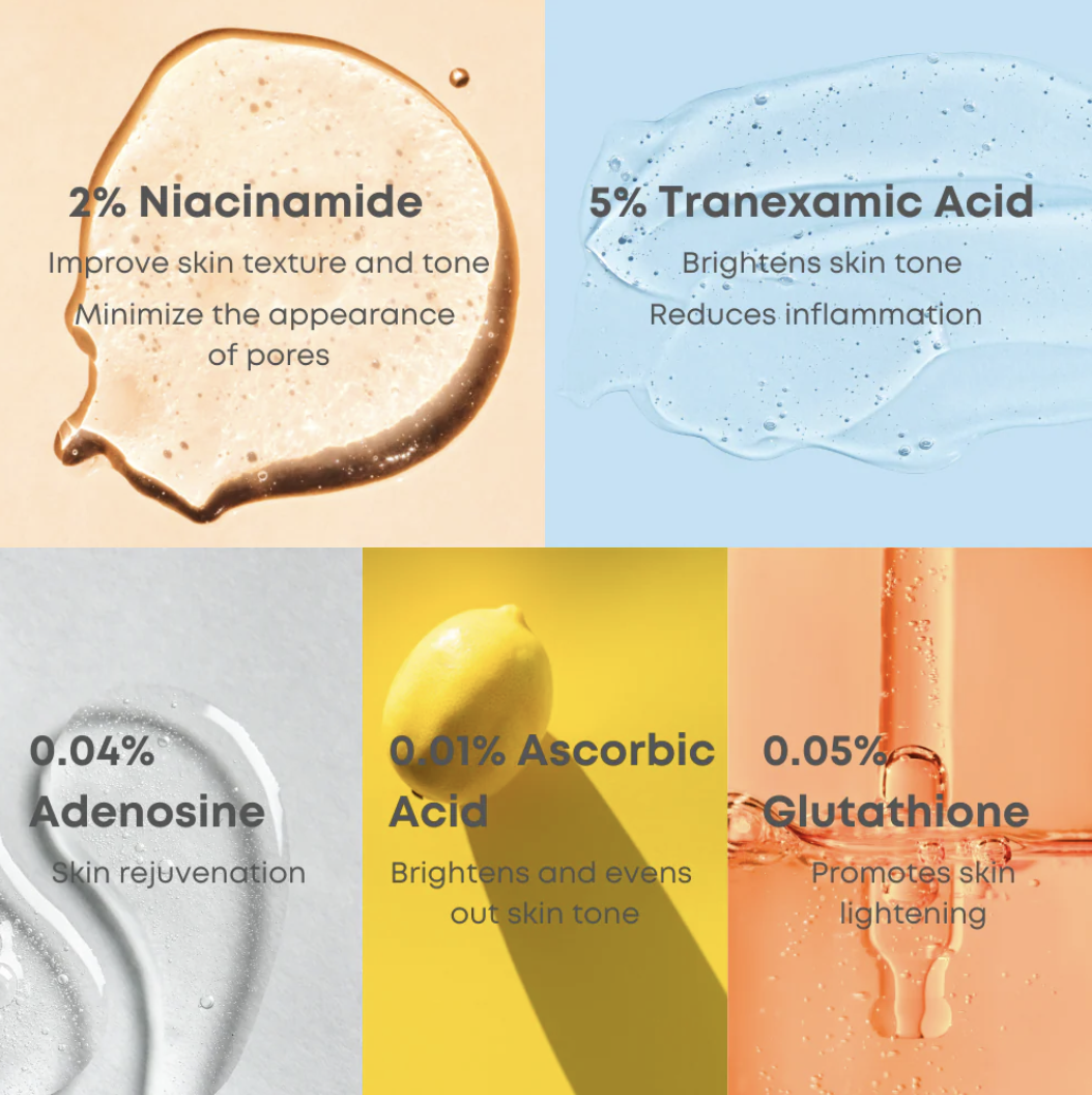 - Ácido Tranexámico al 5 %. Antimanchas potente, antiinflamatorio y despigmentante, ideal para marcas post‑acné o melasma .