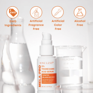 El Suero de ácido tranexamico al 5 % MELA‑PRO de Nineless es un suero ligero y sin fragancia que combina 5 % de ácido tranexámico, 2 % de niacinamida y glutatión, diseñado para atenuar manchas, unificar el tono y aportar hidratación sin irritar pieles sensibles o con tendencia a brotes.